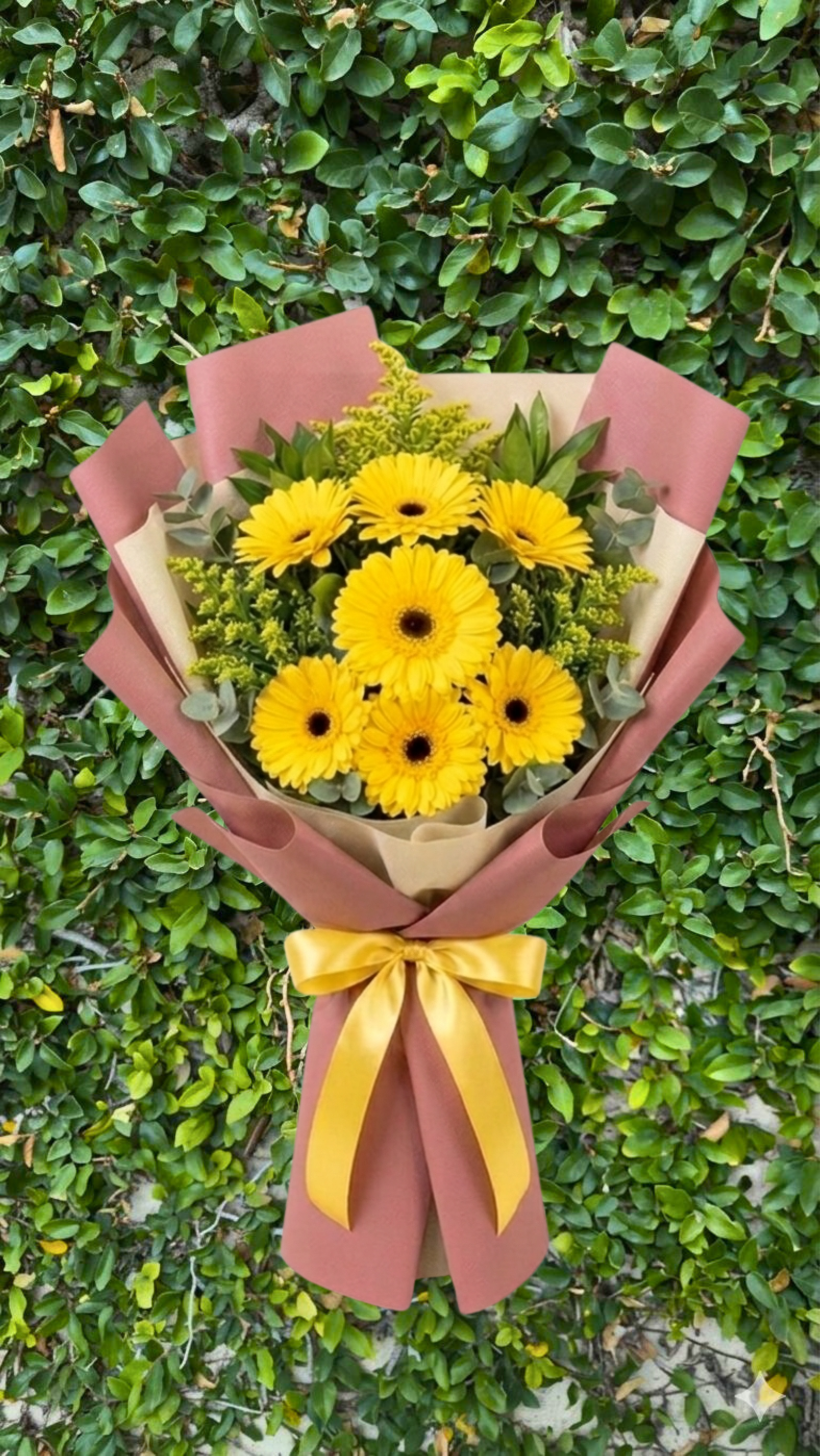 Un ramo lleno de color y frescura que destaca por la belleza vibrante de las gerberas amarillas. Su estilo moderno y alegre lo convierte en un detalle ideal para transmitir felicidad, optimismo y energía positiva. Perfecto para cumpleaños, agradecimientos o cualquier ocasión especial, este arreglo floral combina flores luminosas con follajes naturales y una envoltura elegante que resalta cada pétalo. Las gerberas son conocidas por simbolizar alegría y celebración, lo que hace de este ramo una elección perfecta para iluminar cualquier momento.